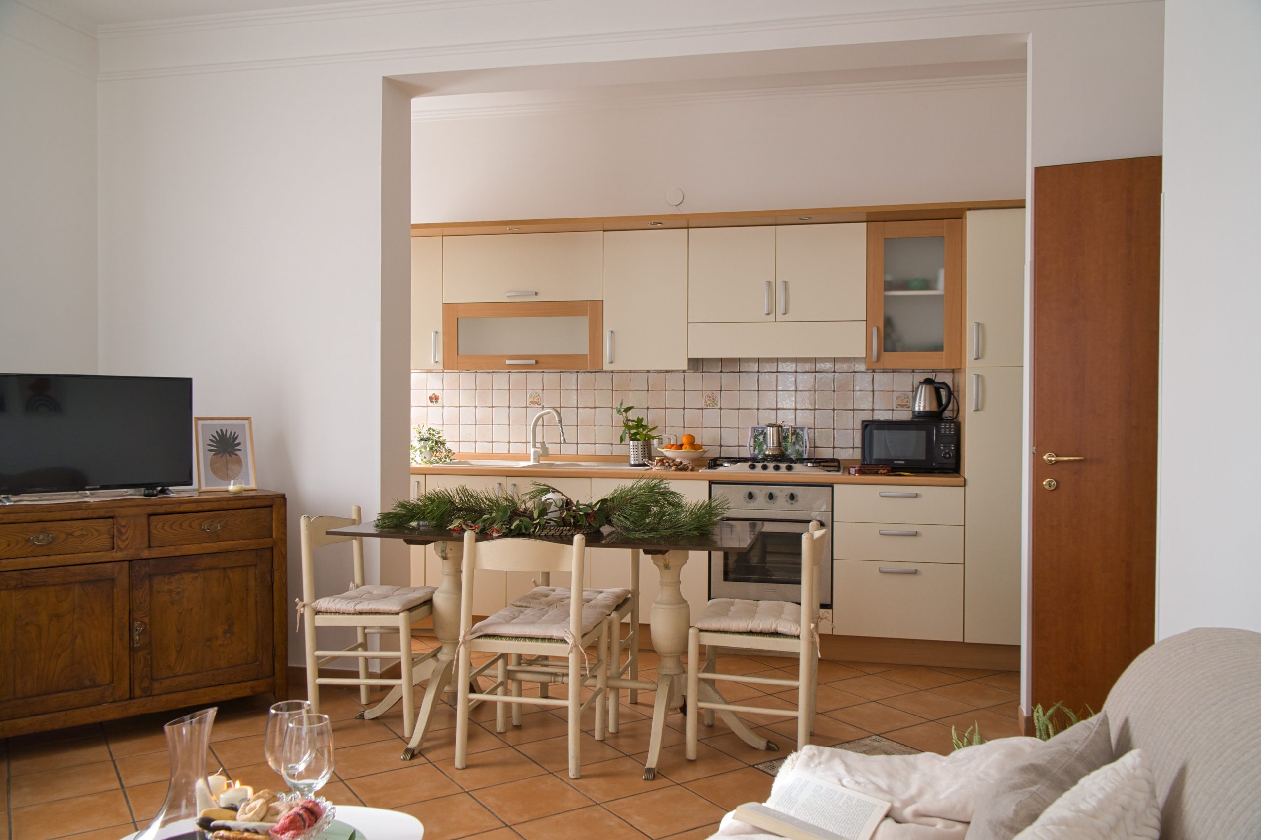 Ideal para hasta 4 huéspedes, el Apartamento Iris en Celano combina elegancia clásica y confort moderno con una paleta de colores cálidos. Su interior, de estilo parcialmente escandinavo, ofrece un ambiente sereno, acogedor y funcional, perfecto para descansar o trabajar con tranquilidad.